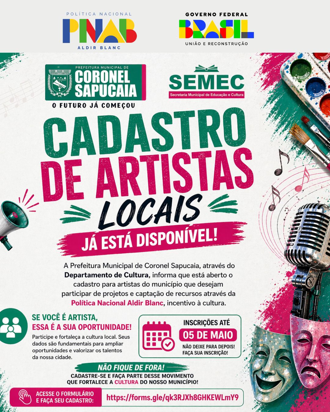 Cadastro de Artistas Locais já está disponível e ficará aberto até dia 05 de Maio de 2026!